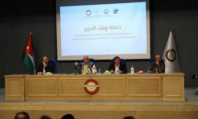 ان حملة “وفاء الدين” التي يشرف عليها ممثلون من غرف الصناعة اضافة الى اعضاء في الهيئة العامة من القطاع الصناعي، تعمل على مدار الساعة وتعقد اجتماعات دورية باستمرار، وتعمل في اكثر من محور، المحور الأول ويشمل تقديم اشكال الدعم وفتح باب التبرعات والدعم العيني اضافة الى اقامة وقفة تضامنية حاشدة مع الشعب الفلسطيني، حيث لقيت هذه الحملة تجاوبا كبيرا من القطاع الصناعي، وما زالت الشركات الصناعية تقدم الدعم العيني والنقدي المستلزمات الطبية والدوائية والخيم والمنتجات الغذائية حيث بلغ حجم التبرعات النقدية والعينية التي تم تم تحويلها للهيئة الخيرية الهاشمية حوالي (16) مليون دولار.