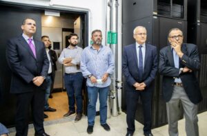واصطحب الجاسم الحضور في جولة تعريفية داخل مركز زين الإقليمي لتخزين البيانات والمعلومات والتعافي من الكوارث “THE BUNKER”؛ للاطلاع على مرافق المركز الذي يعد الأول من نوعه على مستوى المنطقة، والواقع على مساحة 4300 متر مربع، ويحتوي على أحدث حلول الاتصالات وتكنولوجيا المعلومات، التي تجعله مركز بيانات مثالي يضمن حماية وأمان البيانات بأعلى المستويات وحسب المعايير العالمية، من خلال البنية التحتية وجاهزية الخدمة 24 ساعة.