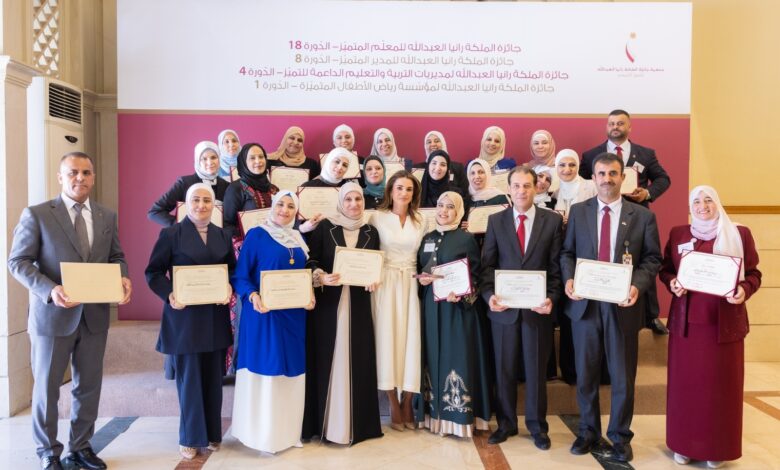 وكرّمت جلالة الملكة رانيا العبدالله الفائزين بـ “جائزة الملكة رانيا العبدالله للمعلّم المتميّز” في دورتها الثّامنة عشرة، و”جائزة المدير المتميّز” في دورتها الثّامنة، و”جائزة مديريّات التّربية والتّعليم الدّاعمة للتّميُّز” في دورتها الرّابعة، و”جائزة رياض الأطفال” في دورتها الأولى.