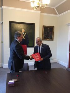 حيث تضمنت الاتفاقية التفاهم على استحداث برنامج دكتوراة مشترك في القانون بالإضافة لبرنامج السنة التأسيسية لطلبة البكالوريوس الراغبين باستكمال دراستهم الجامعية في المملكة المتحدة الى جانب التعاون البحثي والتبادل الثقافي.