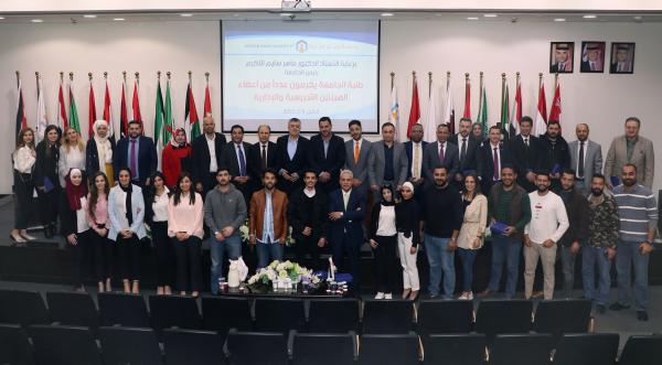 كرم طلبة جامعة عمان العربية أعضاء الهيئيتن التدريسية والأدارية في الجامعة، تقديرا لجهودهم في تقديم الخدمة التعليمية والجامعية الافضل لهم، واعترافا بدورهم في المساهمة في صناعة جيل منتم وواع يسهم في بناء الوطن.