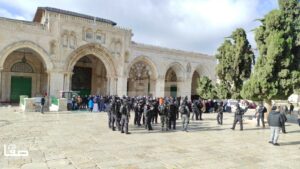 واعترض المصلون مسار المستوطنين؛ ما اضطر قوات الاحتلال لتغيير مسار اقتحامهم.