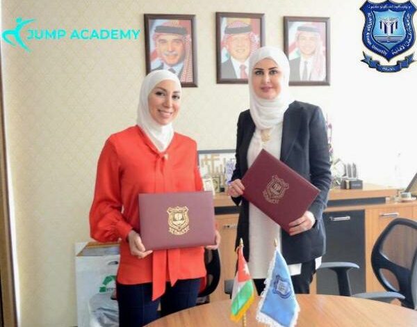 تعزيزاً لدور مركز الاستشارات والتعليم المستمر في جامعة عمان الأهلية في خدمة الطلبة وابناء المجتمع ، تم صباح الخميس، توقيع اتفاقية تعاون مشترك مع أكاديمية JUMP ، بهدف طرح دبلومات تدريبية رياضية بإسلوب أكاديمي علمي حديث، يواكب متطلبات سوق العمل.