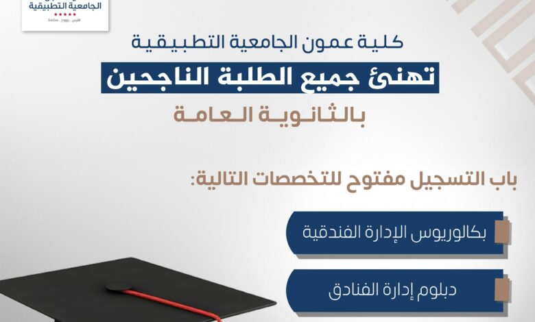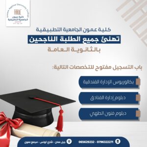 عمون الجامعية التطبيقة تهنئ الطلبة الناجحين بالثانوية العامة