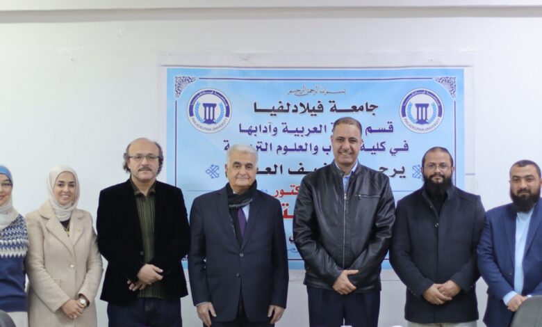 نظّم قسم اللغة العربية وآدابها في كلية الآداب والعلوم التربوية بجامعة فيلادلفيا فعالية ثقافية بمناسبة اليوم العالمي للغة العربية، استضاف خلالها الأستاذ الدكتور سمير إستيتية، الذي قدّم محاضرة علمية ضمن فعاليات الاحتفاء.