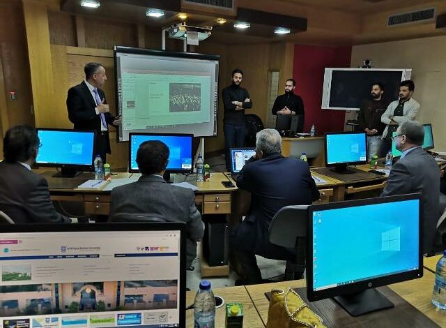 ثم قدم الاستاذ الدكتور خالد الكعابنة مدير مركز الحوراني للتعلم الالكتروني عرضا توضيحيا مبينا أن النظام يعمل على تنفيذ عملية التعلم عن بعد بكل سهولة ويسر من خلال التطبيق السحابي بما يضمن سهولة التواصل بين أعضاء هيئة التدريس والطلبة دون انقطاع ويسمح باستيعاب عدد كبير من الطلبة والمحاضرات في ان واحد مبينا ان بإمكان الطلبة متابعة المحاضرات من خلال الهواتف الخلوية في حال تواجدهم في أماكن لا يتوفر فيها اجهزة حاسوب