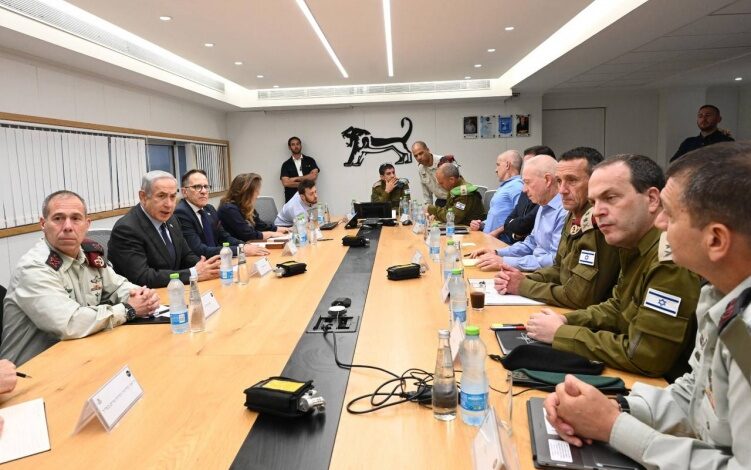 وكان مكتب نتنياهو نشر: “يجري رئيس الوزراء بنيامين نتنياهو تقييما للوضع الأمني في القيادة الوسطى، بمشاركة وزير الدفاع ووزير الشؤون الاستراتيجية ورئيس الشاباك ورئيس الأركان ورئيس شعبة الاستخبارات ورئيس شعبة العمليات وقائد القيادة الوسطى ومنسق عمليات الحكومة”.