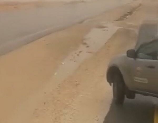قطع حركة السير على الطريق الصحراوي بالاتجاهين نتيجة السيول في الزميلة