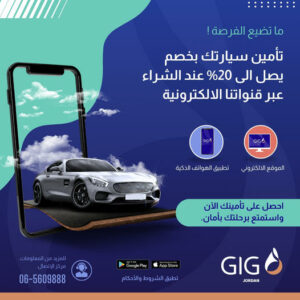 احصل على تأمين سيارتك بخصم يصل الى 20% عند الشراء عبر قنوات مجموعة الخليج للتأمين-الأردن الالكترونية!