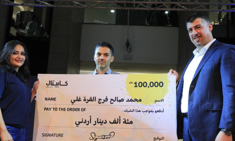 كابيتال بنك يعلن اسم الرابح الأول بجائزة حساب توفير “طريقك دهب” الكبرى والبالغ قيمتها 100 ألف دينار