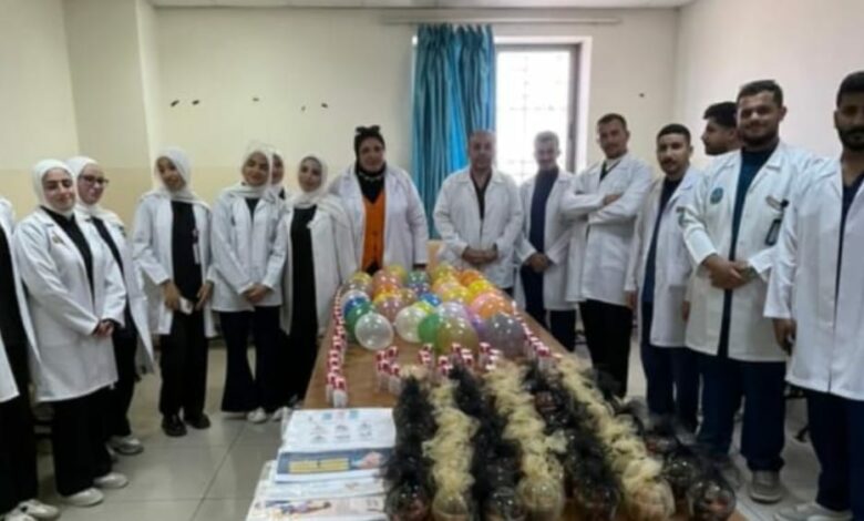 كما حرص الطلبة على مراعاة الجانب النفسي والترفيهي للأطفال، حيث قدّموا فقرات ترفيهية شملت تلوين الوجوه وتوزيع الهدايا والبالونات والعصائر، الأمر الذي أسهم في إدخال البهجة والسرور إلى نفوس الأطفال والتخفيف من وطأة وجودهم في المستشفى. وإلى جانب ذلك، تم توزيع بروشورات تعليمية تثقيفية للأمهات في إطار نشر الوعي الصحي المستدام.