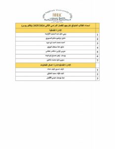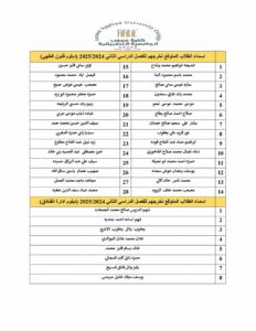 اعتبارا من يوم الاحد الموافق 2025/03/16 ولغاية يوم الخميس الموافق 2025/03/20 الرجاء من جميع الطلبة المتوقع تخرجهم في نهاية الفصل الدراسي الثاني 2025/2024 في برنامجي ( البكالوريوس/ الدبلوم ) تسليم الانسة عبير السواعير والمتواجدة في مكتب