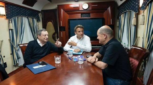استقل الرئيس الفرنسي إيمانويل ماكرون والمستشار الألماني أولاف شولتس ورئيس الوزراء الإيطالي ماريو دراغي ، اليوم الخميس، قطارا خاصا متوجهين إلى كييف، حسبما ذكرت وسائل إعلام إيطالية وألمانية.