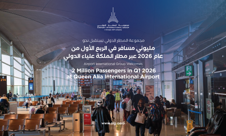 أعلنت مجموعة المطار الدولي، الشركة الأردنية المشغلة لمطار الملكة علياء الدولي، إحصاءات حركة المسافرين ومؤشرات الأداء خلال الربع الأول من العام الجاري 2026، والتي تسلط الضوء على مرحلة تم التركيز في إطارها بشكل استراتيجي على البناء على أداء المطار الحالي، وتنويع شبكة وجهاته الجوية التي تربط الأردن بمختلف أنحاء العالم، مبرهناً على قدرته على الحفاظ على مستويات عالية من جودة الخدمات برغم التقلبات السائدة والتي يشهدها قطاع الطيران العالمي.