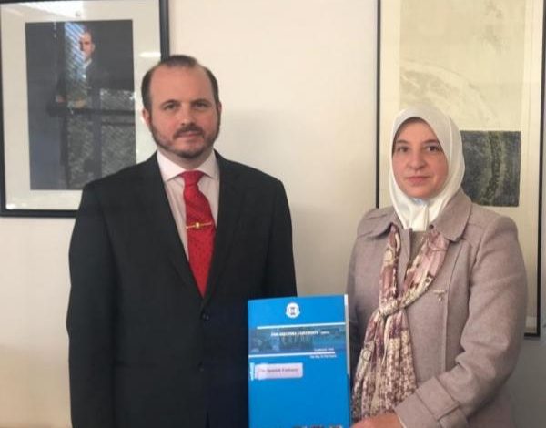 وقد رحب المستشار نائب رئيس البعثة الإسبانية بفتح باب التعاون المشترك بين السفارة والجامعة في الجوانب العلمية والثقافية واللغوية مؤكدًا رغبة السفارة في المشاركة الثقافية مع الجامعة، ويأتي هذا اللقاء ضمن سلسلة لقاءات بالسفارات والملحقيات الثقافية والمعاهد اللغوية التي يسعى من خلالها مركز اللغات بجامعة فيلادلفيا لتحقيق البُعد العالمي بانفتاح المركز لغويًا وثقافيًا على الآخر.