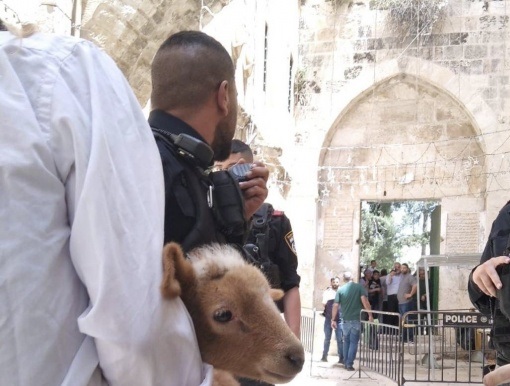 وتصدى الحراس للمستوطنين خلال تواجدهم ووقوفهم في ساحة الغزالي عند باب الاسباط، وهم يحملون القربان.