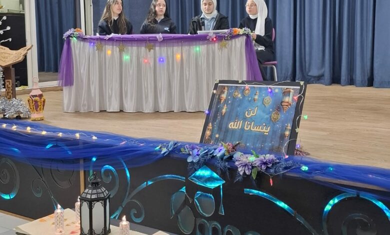 وشهدت الفعالية عرضًا مسرحيًا قدّمته مجموعة من الطالبات تحت عنوان “لن ينسانا الله”، حيث جسّدت المسرحية فضائل الشهر الفضيل، من صيام وصبر وعبادة، وما تحمله هذه القيم من أثر في تهذيب النفس وتقوية الروح.