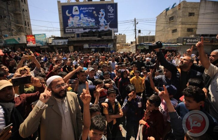 وشارك آلاف المواطنين الفلسطينيين بمسيرات حاشدة بعد صلاة الجمعة بغزة وخان يونس للتنديد باعتداء شرطة الاحتلال الإسرائيلي على المصلين في المسجد الأقصى.