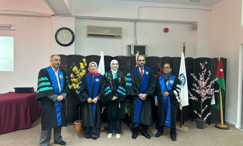 وتألفت لجنة المناقشة من أ.د. رائدة خليل مشرفاً ورئيساً للجنة، وأ.د. محمد القضاة من كلية الطب في الجامعة الهاشمية ممتحناً خارجياً، ود. مروان أبو حلاوة ممتحناً داخلياً.