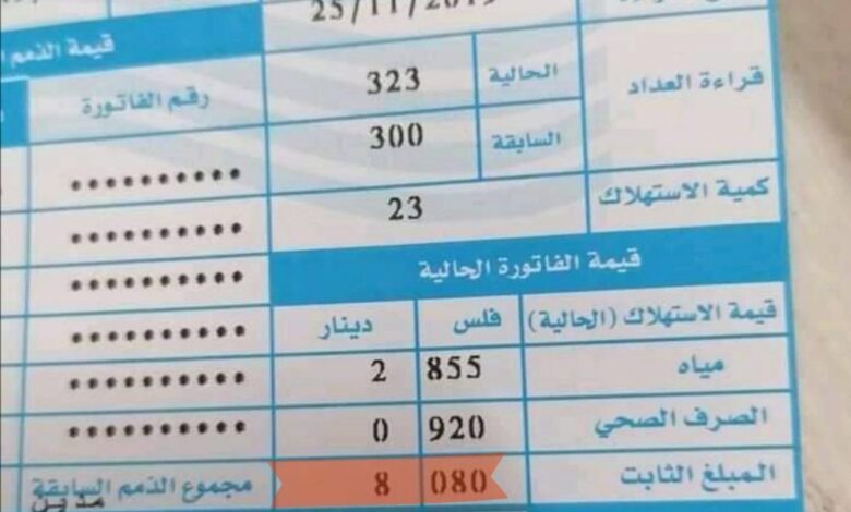 وأشار إلى أنه سيتم تقسيم رسوم فاتورة المياه الربعية على الفاتورة الشهرية، حيث ستكون أقل فاتورة تصل للمواطن (دينارين ونصف).