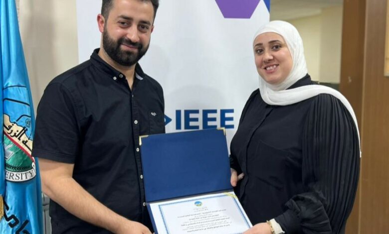 وفي ختام المحاضرة، كرّمت الدكتورة ميس الزغول المهندس محمد حورية بشهادة تقدير، تثمينًا لجهوده في تقديم محتوى علمي متميز يسهم في إثراء المعرفة التقنية لطلبة القسم وتعزيز مهاراتهم العملية في مجالات الأتمتة والطاقة المتجددة.