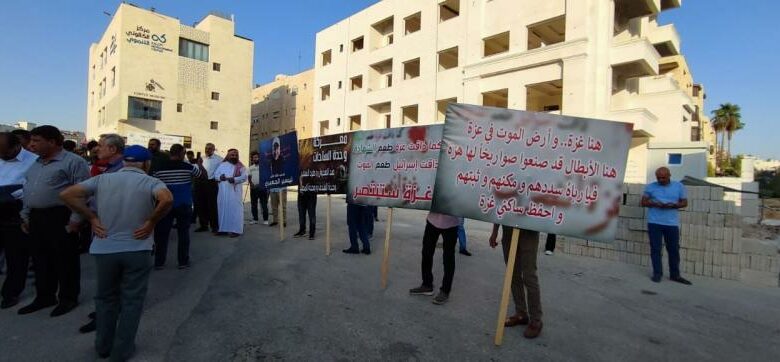 نفذ عشرات الأردنيين اليوم السبت وقفة احتجاجية امام مسجد الكالوتي قرب السفارة الاسرائيلية في عمان، رفضا للعدوان الاسرائيلي على غزة.