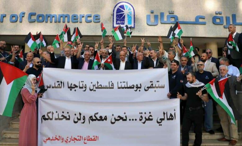 وجدد التأكيد على ان غرفة تجارة عمان تسخر كل امكانياتها لتقديم العون والمساعدة للاهل في قطاع غزة، لافتا الى ان وقفتنا اليوم أقل واجب نقدمه للاهل الصامدين في قطاع غزة، موجها التحية لكل الشرفاء الذين يدافعون عن المسجد الاقصى وعن الأمة وقضاياها.