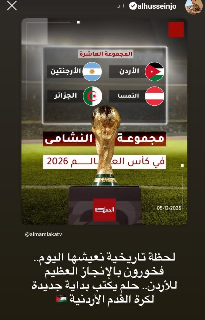 وأضاف سموه في منشور عبر الأنستغرام:” فخورون بالإنجاز العظيم للأردن.. حلم يصنع بداية جديدة لكرة القدم الأردنية “.