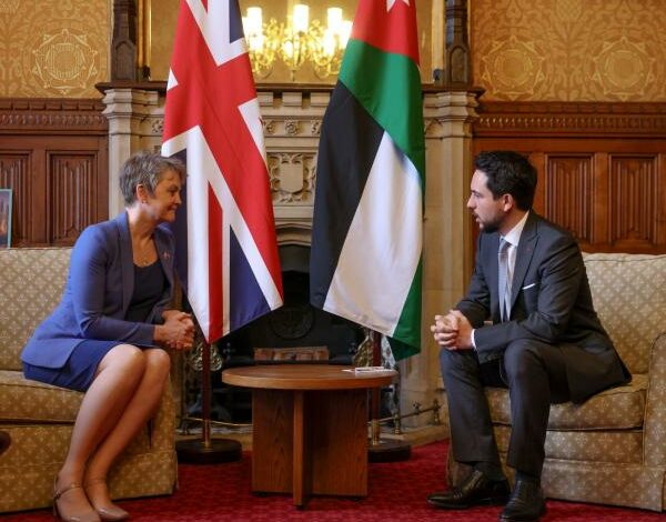وأشاد سمو ولي العهد بالعلاقات المتميزة بين الأردن وبريطانيا، لافتا إلى توافق الرؤى بين البلدين فيما يتعلق بتحقيق السلام بالشرق الأوسط.