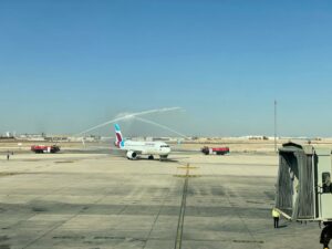 وحظي الطاقم والمسافرون باستقبال مُميّز في مطار الملكة علياء الدولي، حيث جرى الترحيب بالطائرة برش المياه من قبل الدفاع المدني، والتي يخصصها عادةً للرحلات الافتتاحية.