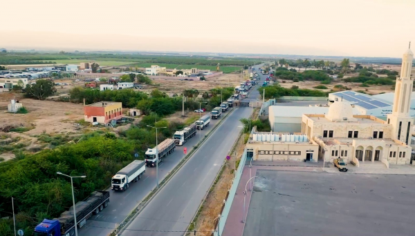 دخلت اليوم الجمعة، إلى قطاع غزة، قافلة المساعدات الغذائية الأردنية المكونة من 100 شاحنة، من خلال معبر كرم أبو سالم.