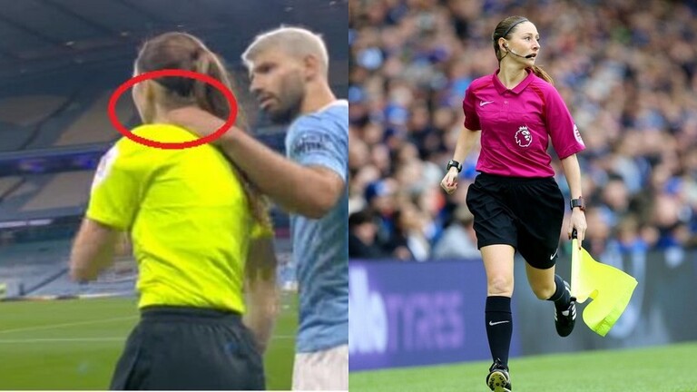 وأصر أغويرو على منح رمية التماس لفريقه، حيث احتج بقوة على مساعدة الحكم، وتلفظ ببعض الكلمات قبل أن يمسك بكتفها، مطالبا إياها بالتراجع عن قرارها، لكنها أبعدت أغويرو، ليتواصل اللعب.