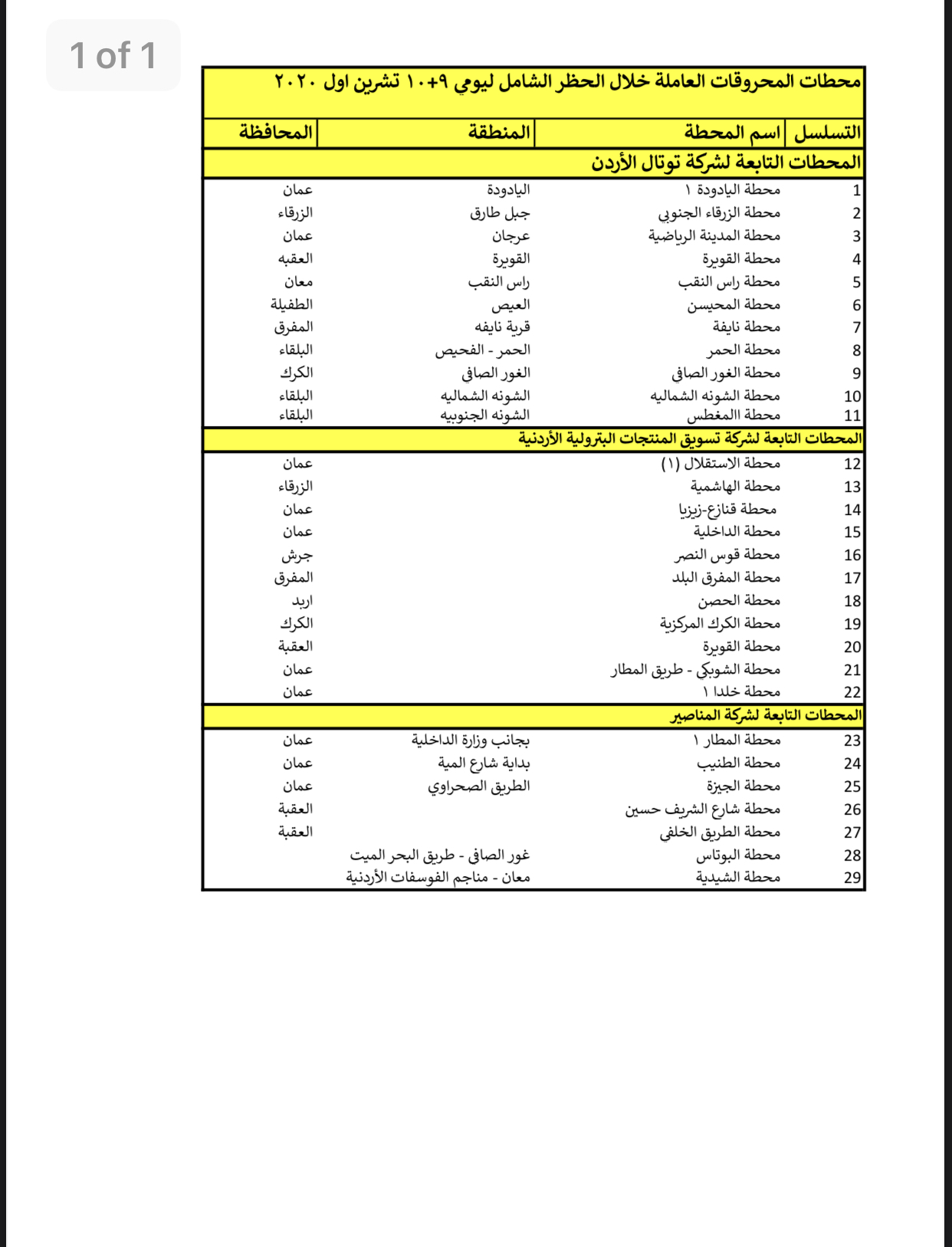 29 محطة محروقات عاملة خلال حظر التجول الشامل-اسماء