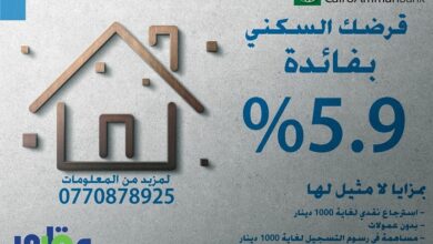 أفضل قرض سكني من بنك القاهرة عمان بمزايا لا مثيل لها بسعر فائدة 5.9% للإتصال و الإستفسار التواصل على الأرقام…
