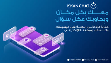 بنك الإسكان يطلق خدمة الرد الآلي Iskan Chat من خلال قنواته ومنصاته الإلكترونية