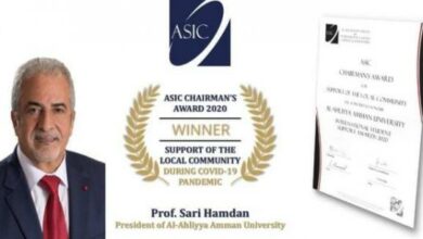 جامعة عمان الأهلية تحصل على جائزة ASIC الدولية لأفضل جامعة دعمت مجتمعها المحلي خلال بداية جائحة كورونا