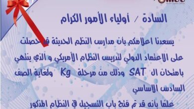 يسعدنا إعلامكم بأن مدارس النظم الحديثة قد حصلت على الاعتماد الدولي لتدريس النظام الأمريكي الذي ينتهي بامتحان الـ SAT وذلك…