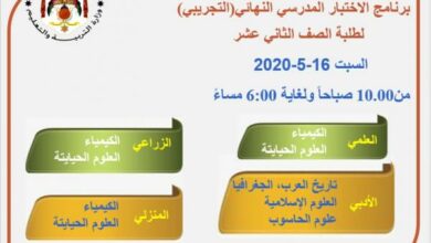 يواصل طلبة الصف الثاني عشر (التوجيهي)، التقدم للاختبار التجريبي التي تجريه وزارة التربية والتعليم عبر منصة درسك وبدأ يوم الثلاثاء…