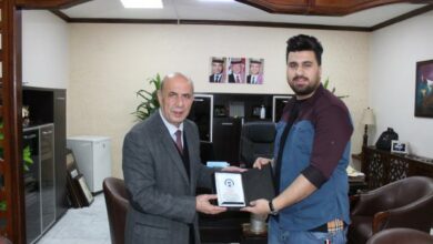 استقبل رئيس الجامعة معتز الشيخ سالم في مكتبة ممثل طلبة الجالية العراقية في جامعة فيلادلفيا الطالب محمود هاشم العزاوي من…
