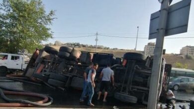 تدهور صهريج نضح واغلاق طريق في عبدون (صور)