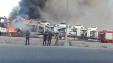 العقبة : إخماد حريق بناقلة سيارات دون وقوع إصابات