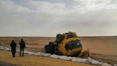 انقلاب شاحنة على الصحراوي واصابة سائقها ونفوق اغنام