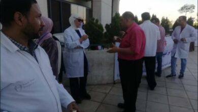 وقفة احتجاجية للعاملين بالمهن الطبية المساندة في مستشفى الأمير حمزة