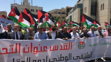نظمت فعاليات شعبية وحزبية اليوم الجمعة، وقفة تضامنية، أمام مسجد الكالوتي غربي العاصمة عمان، نصرة للشعب الفلسطيني ضد العدوان الإسرائيلي…