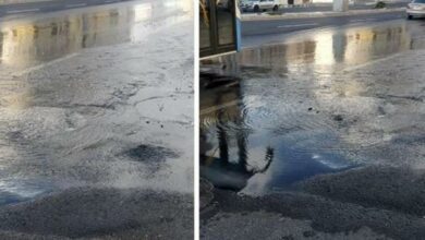 خط مياه مكسور يتسبب بأزمة مرورية على مخرج نفق المدينة