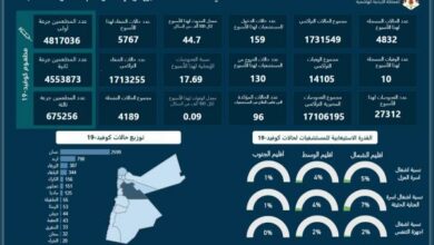 10 وفيات و4832 اصابة كورونا جديدة في الاردن خلال اسبوع