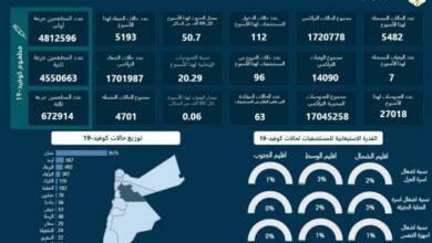 7 وفيات و5482 إصابة كورونا جديدة في الأردن خلال اسبوع