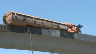 إنزال صهريج الخدمات من فوق جسر المدينة بعد 6 ساعات من تدهوره