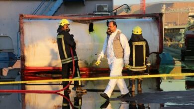 المدعي العام والمختبر الجنائي في ميناء العقبة لبدء التحقيق بحادثة الغاز